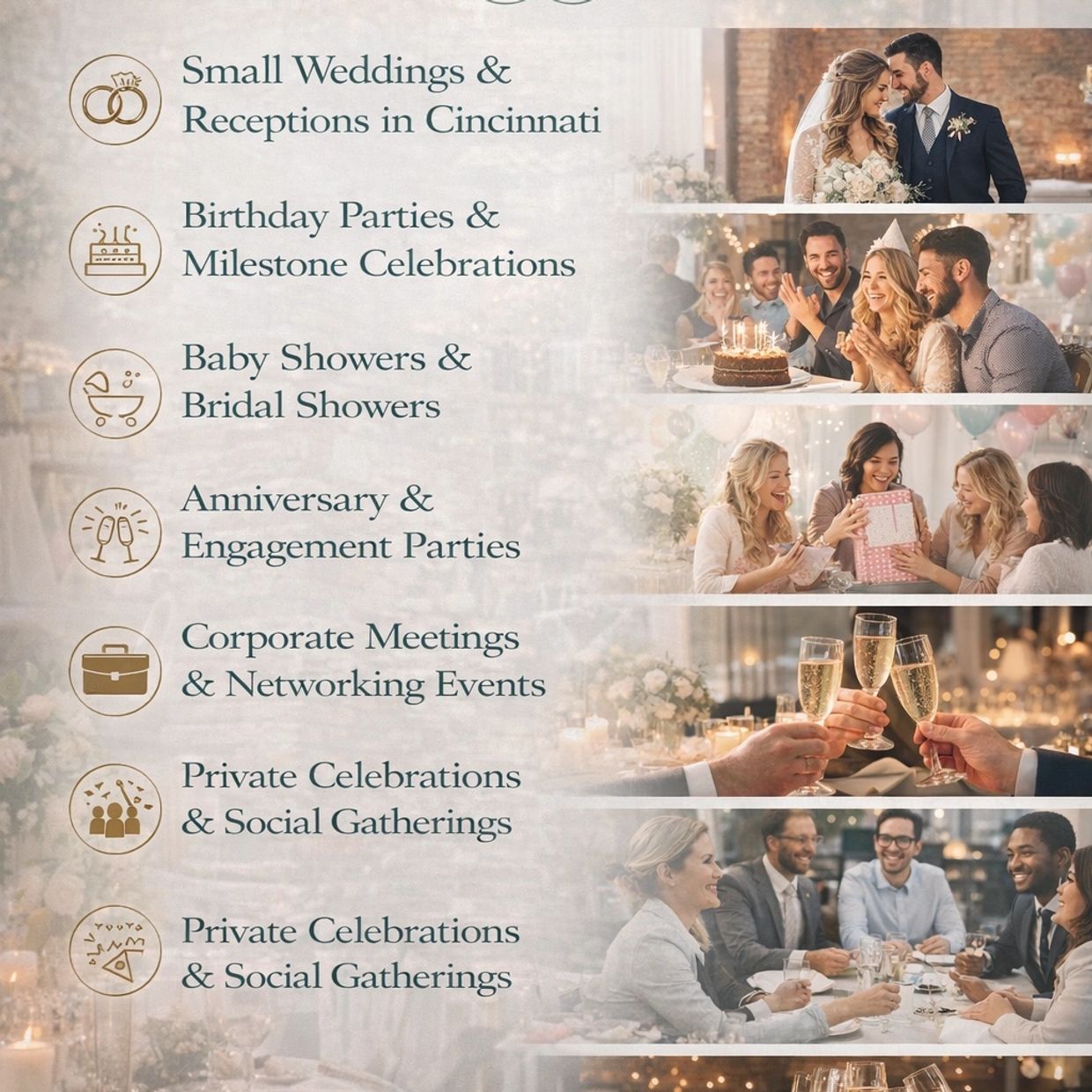 We love our customers, so feel free to email or text us to schedule a tour to view our private events & wedding venue located in Cincinnati